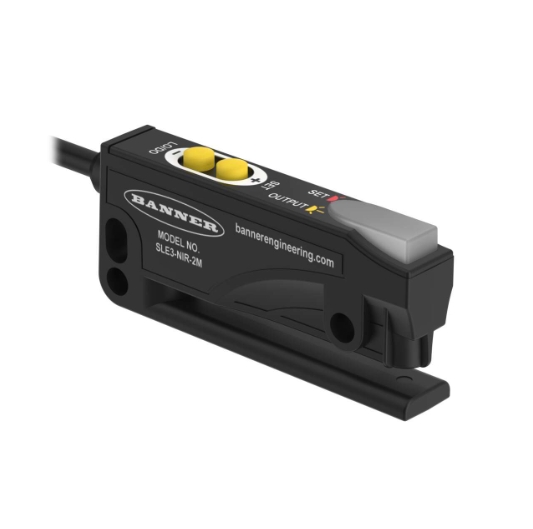 邦納 SLE3 系列是一款緊湊的光學標簽槽形傳感器,主要用于檢測粘貼在背紙上的粘性標簽,以下是其特點:
