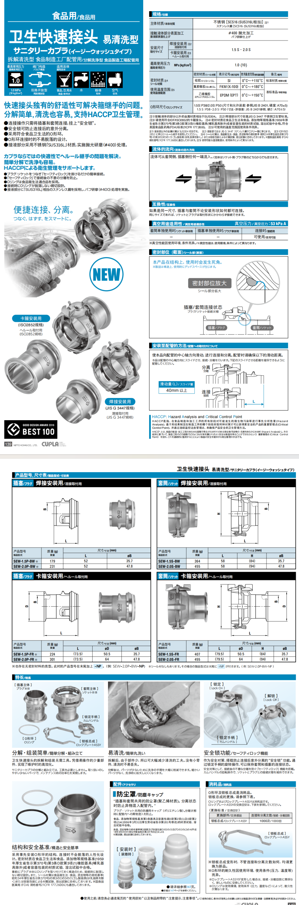 食品用 衛生快速接頭SEW-2.0S-BW