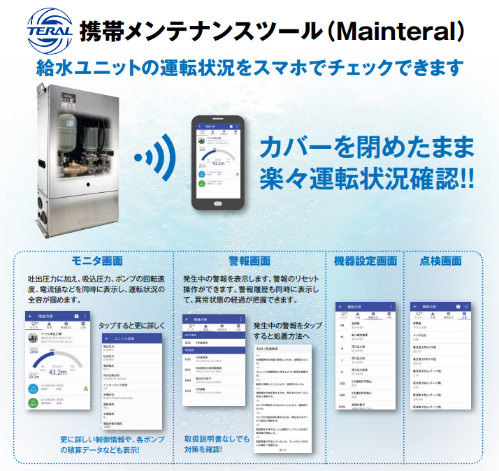 ?您可以使用便攜式維護工具通過智能手機檢查供水裝置的運行狀態(tài)。